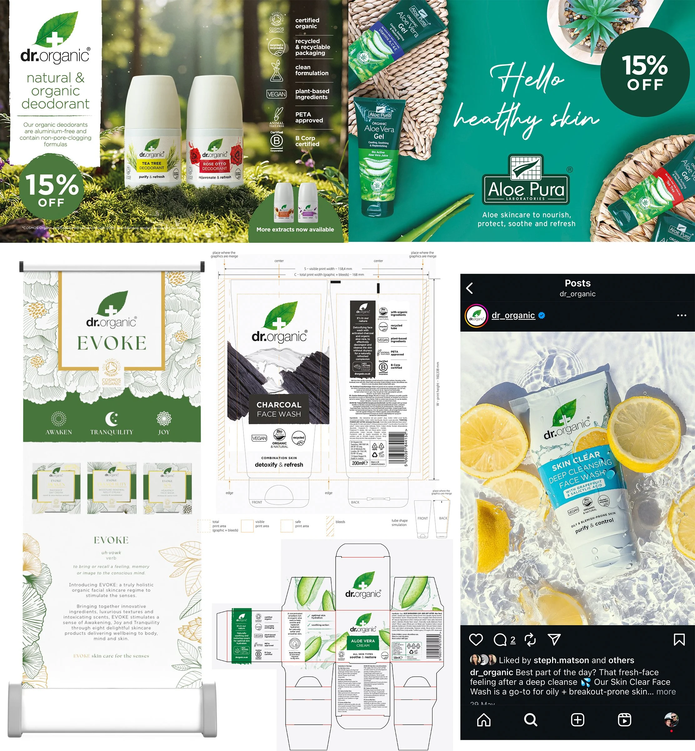I thrive within a dynamic, talented design team at Dr Organic, where collaboration drives some of our best work. I contribute to creating visuals and creative design across product artwork, packaging, point-of-sale (POS), social media campaigns, and e-commerce platforms. My contributions blend innovative design solutions with strategic brand alignment, resulting in impactful, cohesive creative outputs that resonate with diverse audiences.